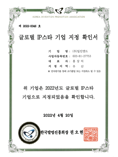 글로벌 IP스타 기업 지정 확인서