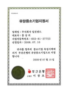 유망중소기업지정서