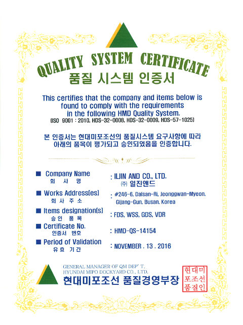 품질 시스템 인정서 (HMD)