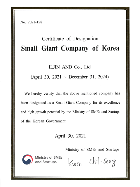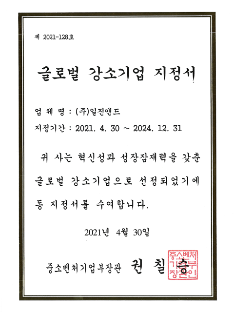 글로벌 강소기업 지정서(영문)