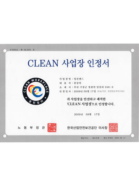 CLEAN 사업장 인정서