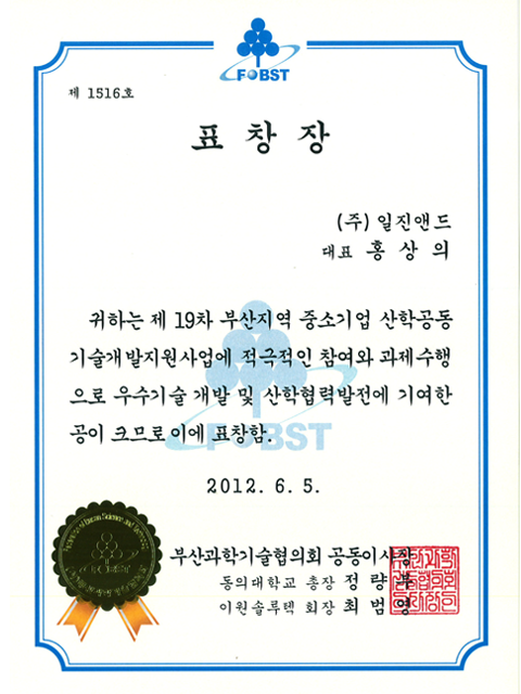 부산과학기술협의회 표창장