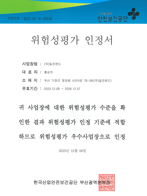 위험성평가 인정서