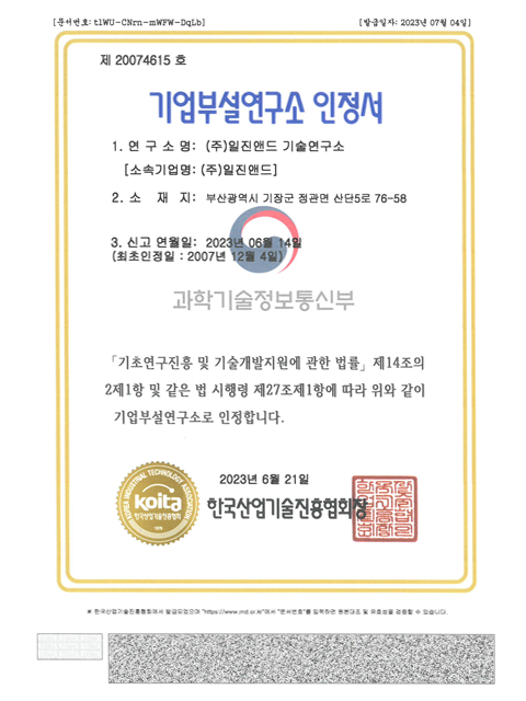 기업부설연구소 인정서