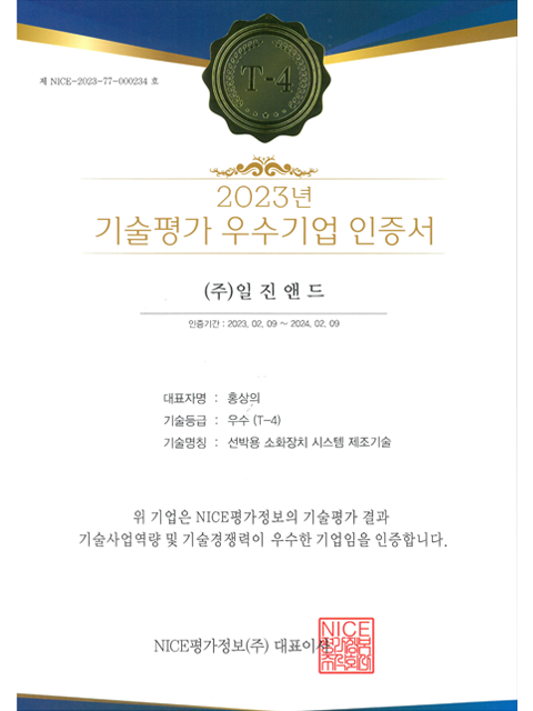 [NICE평가정보] 기술평가 우수기업 인증서